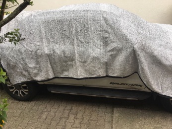Der zur Zeit beste Sonnenschutz für ihren Hund im Kfz, Das UV beschichtete Material reflektiert bis zu 80% der Sonneneinstrahlung(wie ein Spiegel) und verhindert dadurch Hitzestaus im Kfz.